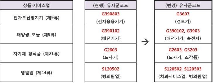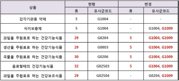 ▶기타 상품류 및 유사군코드 조정내역