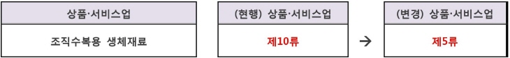 ▶ ‘조직수복용 생체재료’의 경우 이식에 사용되는 생체조직이므로 류 변경 생체조직으로 구성된 이식물 (제5류), 혈관이식용 생체조직 (제5류), 인공이식물 (제10류)