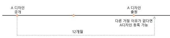 - 출원 전 국내외에 널리 알려져 공개된 디자인은 새로운 디자인이 아니라는 이유(신규성 상실)로 등록이 거절될 수 있으나, 공개된 지 12개월이 지나기 전에 자신의 해당 디자인을 출원할 경우 신규성 상실의 예외를 주장할 수 있음