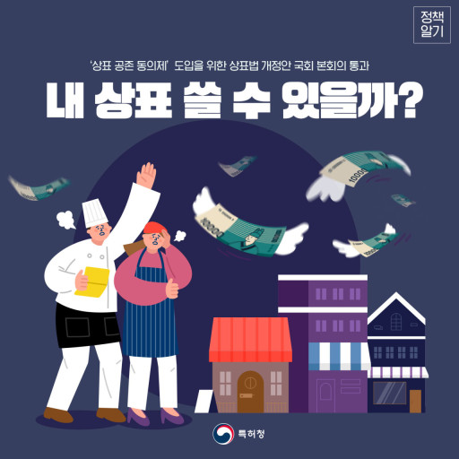(출처: 특허청 공식 블로그) 지난 10월 6일, 상표 공존 동의제의 도입을 골자로 하는 상표법 일부개정법률안이 국회 본회의를 통과하였습니다. 주요 내용은 다음과 같습니다. 1. 상표 공존 동의제 도입 ① 선출원(등록)상표권자의 동의에 의한 상표등록 허여 선등록상표권자 및 선출원인이 동의하는 경우, 동일ㆍ유사한 후출원상표도 등록 받고 사용할 수 있도록 하는 제도가 도입되었습니다. 다만, 소비자들의 오인·혼동을 방지하기 위하여 상표와 지정상품이 ‘동일’한 경우에는 동의를 받았더라도 등록을 받을 수 없습니다. ☞ 개정법 시행 이전에 출원했더라도 시행 시점에 등록 여부가 확정되지 않은 출원 건에 대해서도 소급하여 적용될 수 있습니다. ② 동의에 의한 상표등록에 대한 취소심판 청구 사유 추가 선등록상표권자나 선출원인의 동의 하에 등록된 상표 또는 그 상표등록에 동의를 한 자의 상표 중 어느 한쪽이라도 부정경쟁목적으로 사용되는 경우, 상표 등록 취소 사유가 될 수 있습니다. ③ 취소 사유 신설에 따라 등록 취소된 상표의 재출원 제한 규정 정비 신설된 취소 사유에 따라 등록 취소된 상표와 동일ㆍ유사한 상표는 심결 확정일로부터 3년까지 재출원이 불가합니다. ④ 취소 사유 신설에 따른 취소심판 청구의 제척기간 규정 정비 신설된 취소 사유에 대한 취소심판 청구의 제척기간은 3년입니다. 2. 사용에 의한 식별력 인정 대상의 확대 상표법 제33조 제1항 제7호의 ‘기타 식별력 없는 상표’도 사용에 의한 식별력이 인정되는 대상으로 규정한다는 것으로, 이에 따라 ‘기타 식별력 없는 상표’ 라도 그 상표의 사용 결과 특정인의 출처표시로 식별력을 취득하게 된 경우에는 상표 등록을 받을 수 있습니다(실무상 인정되던 것을 명문화). 3. 변경출원의 우선권 자동인정 원출원에 우선권 주장 또는 출원 시의 특례주장 및 관련 증명서류의 제출이 있는 경우, 변경출원 시에도 자동으로 인정됩니다. 4. 등록료 반환 대상 확대 존속기간 만료일 전에 갱신등록료를 납부하거나, 등록료를 분할 납부하여 2회차 등록료를 납부하였는데, 새로운 존속기간의 시작 전에 상표권이 소멸된 경우, 미리 납부한 (갱신)등록료는 반환됩니다.