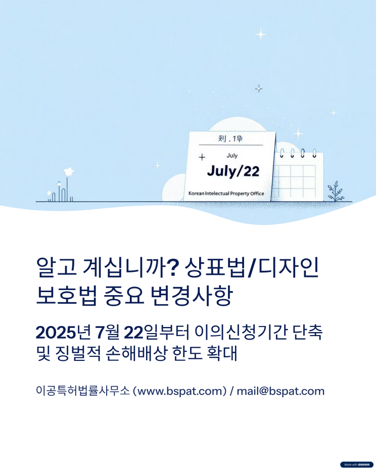 전문가와 함께 정확하게 대응하세요. 📩 자세한 사항은 #이공특허법률사무소에 지금 바로 문의하세요. 📧 mail@bspat.com