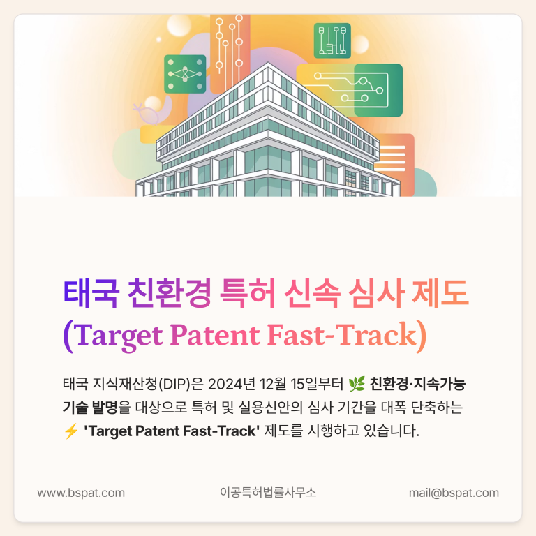 | 이전글 | 태국 친환경 특허 신속심사 제도(Target Patent Fast-Track) 안내 |