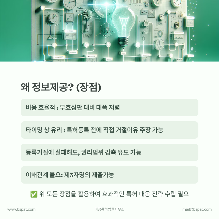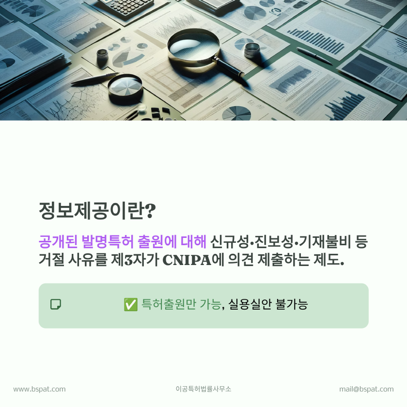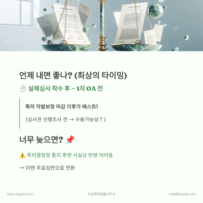 위협이 되는 경쟁사 중국특허출원에 정보제공으로 특허등록 전 단계에서 빠르고 합리적으로 대응하는 방법 ⚡️ 언제 효과적일까? ⏱ 실체심사 착수 후 ~ 1차 OA 이전, 특히 자발보정 마감 이후가 베스트. 이때가 외부 자료 수용성이 높아 거절가능성을 높이는데 유리해요. 🚨 주의할 점 ⚠️ 특허등록결정(허여 통지) 후에는 반영이 매우 어렵습니다. 그땐 무효심판이 현실적 대안이에요. 📩 자세한 사항은 #이공특허법률사무소에 지금 바로 문의하세요. 📧 mail@bspat.com ![]() ![]() ![]() ![]() ![]() ![]()